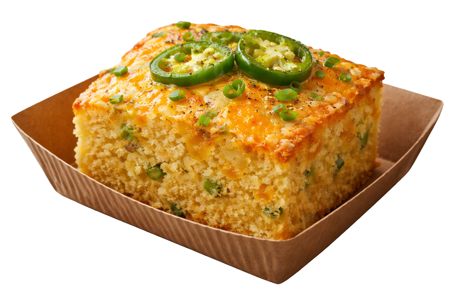 Moist, cheesy cornbread with real jalapeño heat. They’re savory, comforting, and just spicy enough to keep you reaching back for another bite.