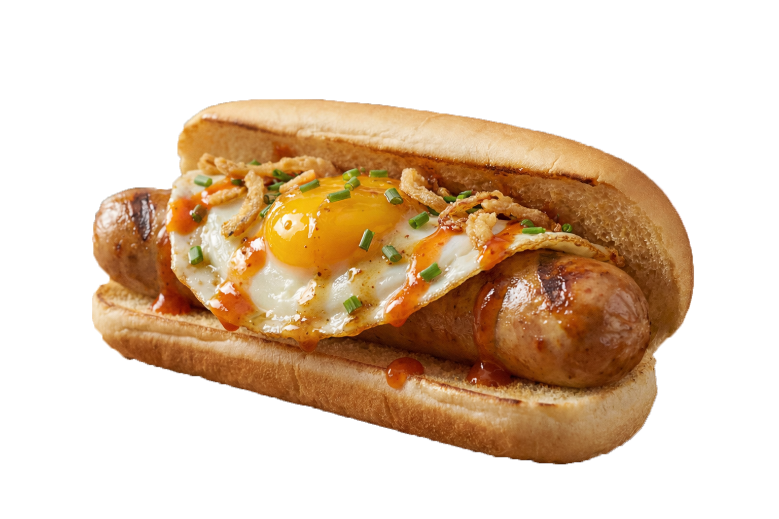 A grilled brat crowned with our signature maple-mustard glaze, a jammy fried egg, crispy onions, fresh chives, and a controlled drizzle of sweet habanero heat.